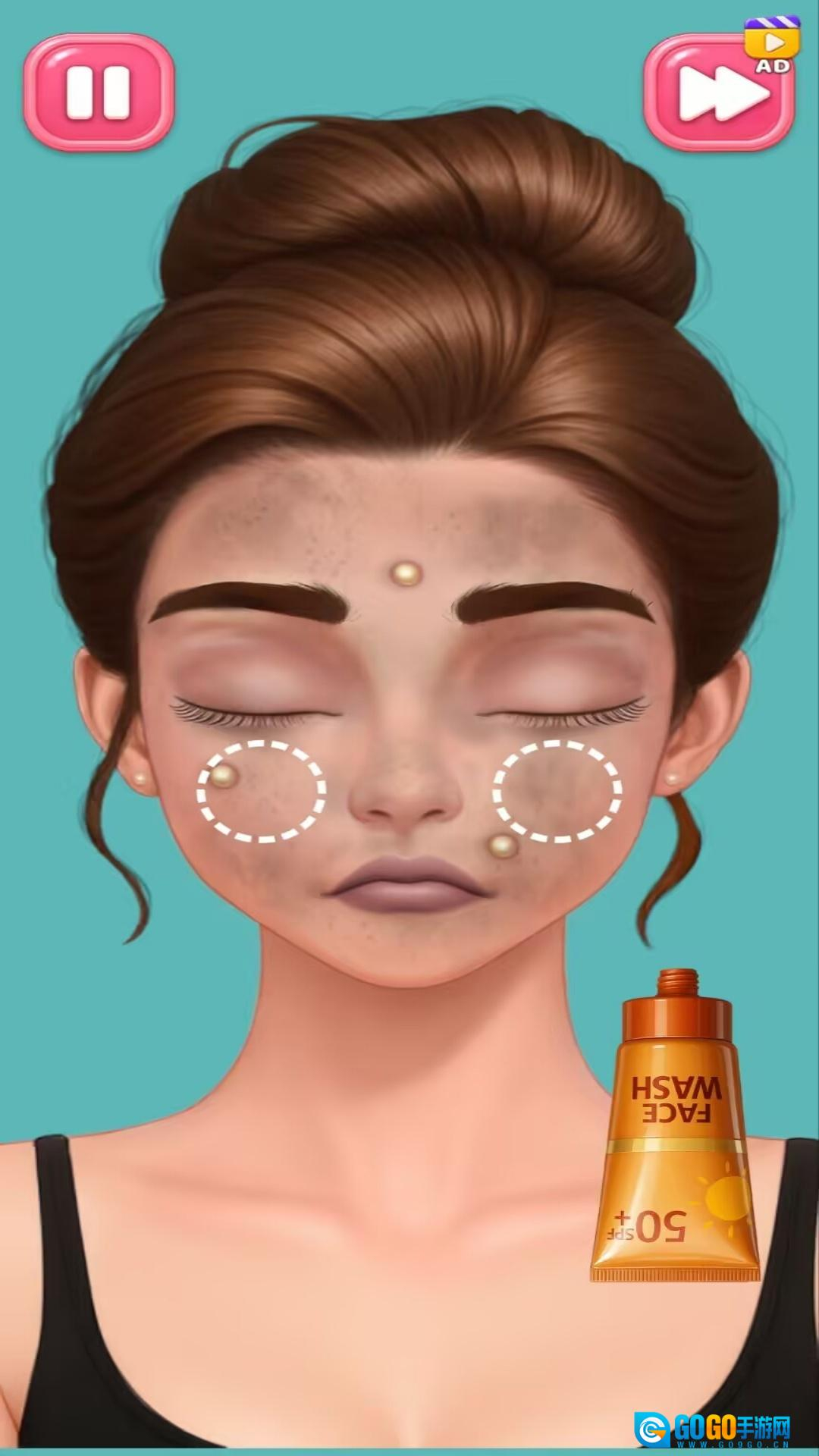 1、玩家需针对角色脸部呈现的问题,找寻正确的解决办法,挑选合适的工具迅速完成美妆处理。
