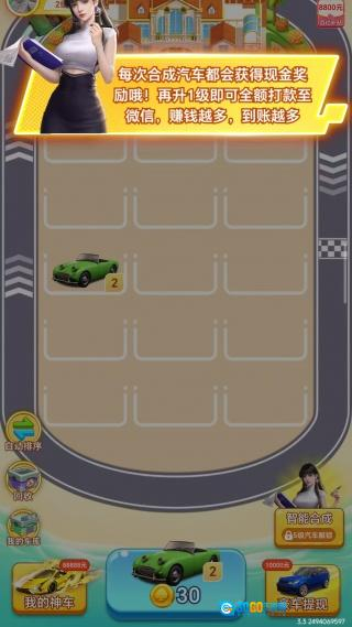 3、踊跃投身汽车合成活动,每完成一次合成,都能收获现金奖励。持续对汽车进行升级,一旦满足提现条件,即可将全部奖励金额打款至微信账户。