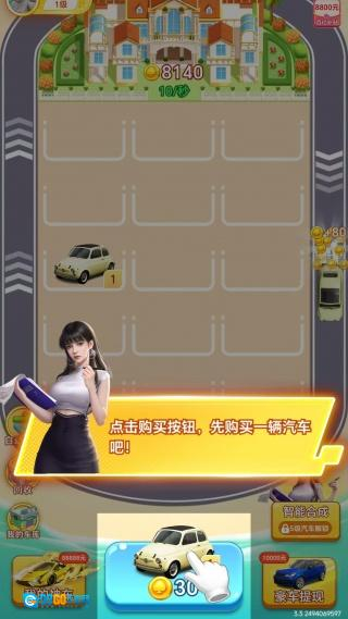 1. 找到底部标有“30”金币的汽车购买按钮并点击,首先购买一辆基础汽车,接着把它停放在停车场里,由此开始积累金币。