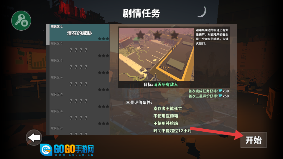 2. 挑选【潜在的威胁】任务,轻点【开始】,投身任务挑战,赢取奖励,增强角色实力。