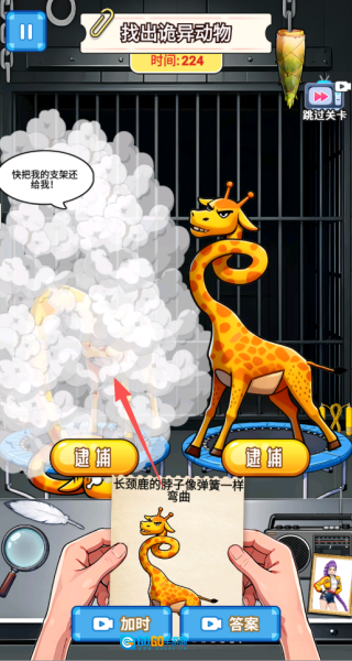 1. 点击动物时,准确点击其异常部位,像异色毛发、多余肢体之类,以此触发逮捕提示,降低无效点击情况。