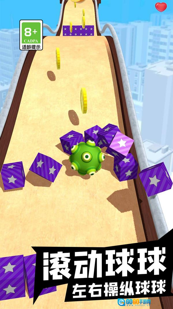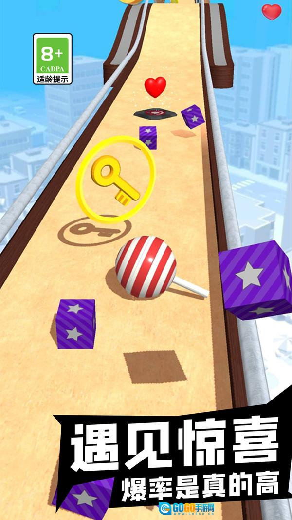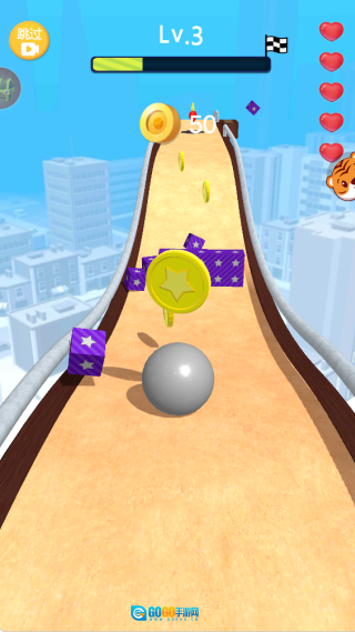 2. 借助左右滑动来操控小球的移动方向,向前滑动能够达成加速效果,同时要留意保持右侧的生命值。