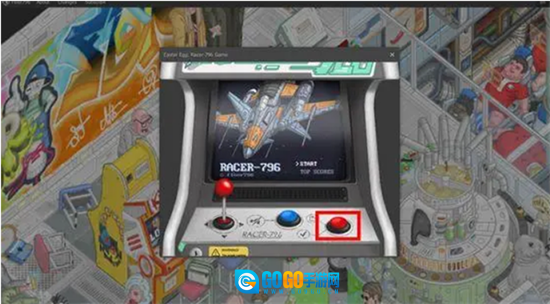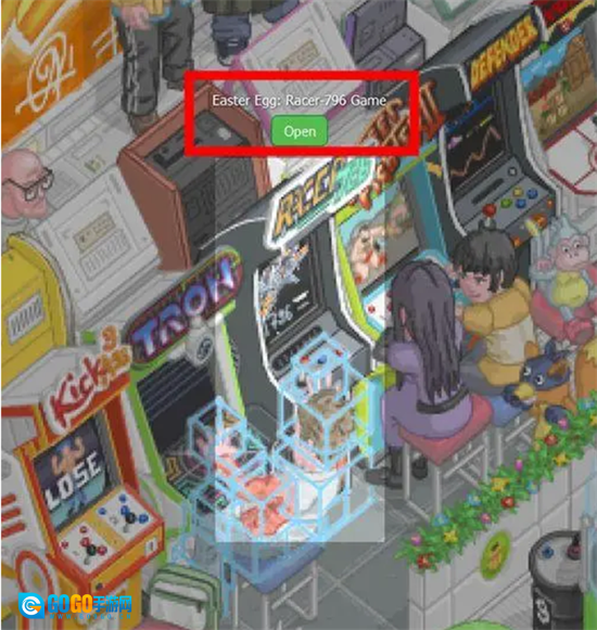 8. 当您点击场景里的游戏机时,会呈现“复活节彩蛋:赛车手”,接着点击“打开”,就能尽情游玩隐藏的赛车游戏。