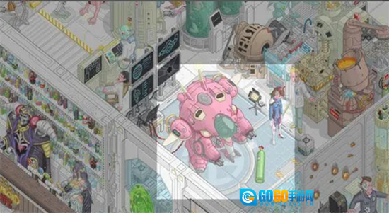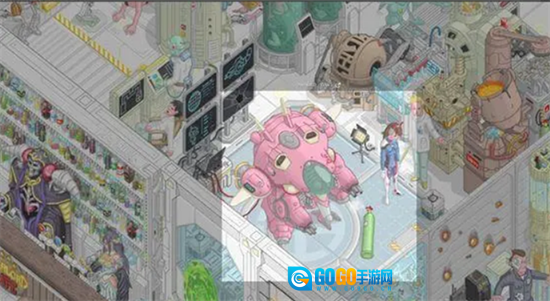 1. 场景设定在“巨大空间站的796层”,屏幕边缘,诸如怪异生物、培养设备、进行观察的科学家、维修系统的工程师等各类元素动态移动,构建出一个生机勃勃的环境。