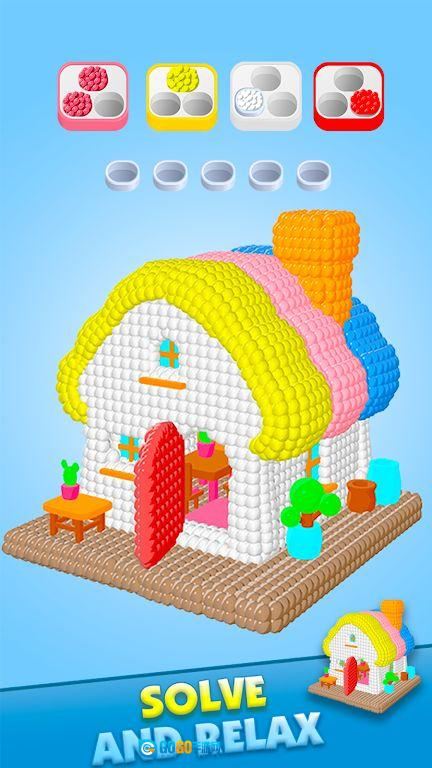 1. 围绕以彩色珠子搭建的立体玩具展开,把解压感受和策略消除元素融入3D空间之中,塑造出专注且极具层次感的闯关场景。
