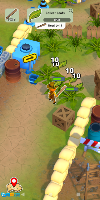 3. 画面上方的任务提示会持续更新,此刻我们得依据任务去收集树叶。借助收集资源来升级武器、打造工具,从而逐步增强你的生存能力。