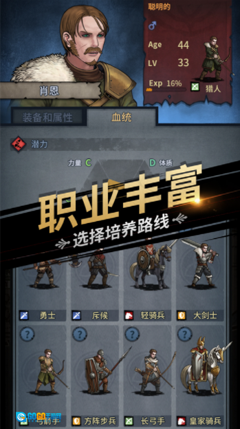 士兵依据血统类型有所区分,拥有高级血统的角色能够赋予更高的力量、技巧以及敏捷等属性。