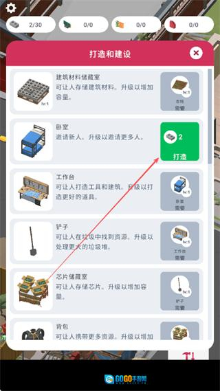 3、按照提示,于打造与建设界面中挑选诸如卧室之类的建筑,接着点击打造按钮,耗费资源来开展修建工作。