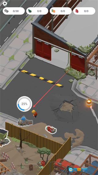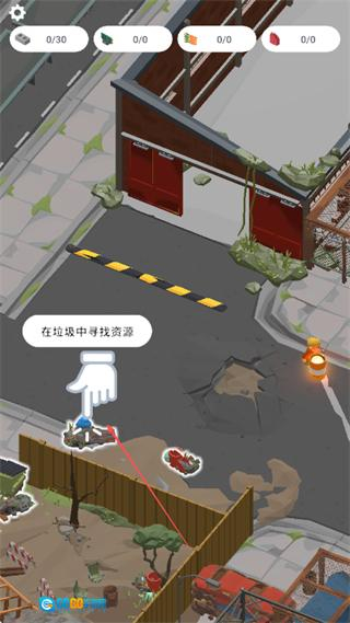 1. 在废墟场景里寻觅诸如建筑材料之类的资源,点击资源点展开采集操作,逐步积累资源数量。