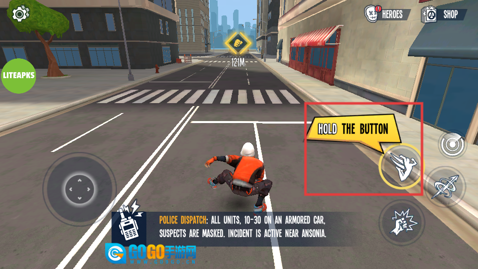 1. 长按按钮,控制角色移动,朝着任务地点进发,推动游戏进程。