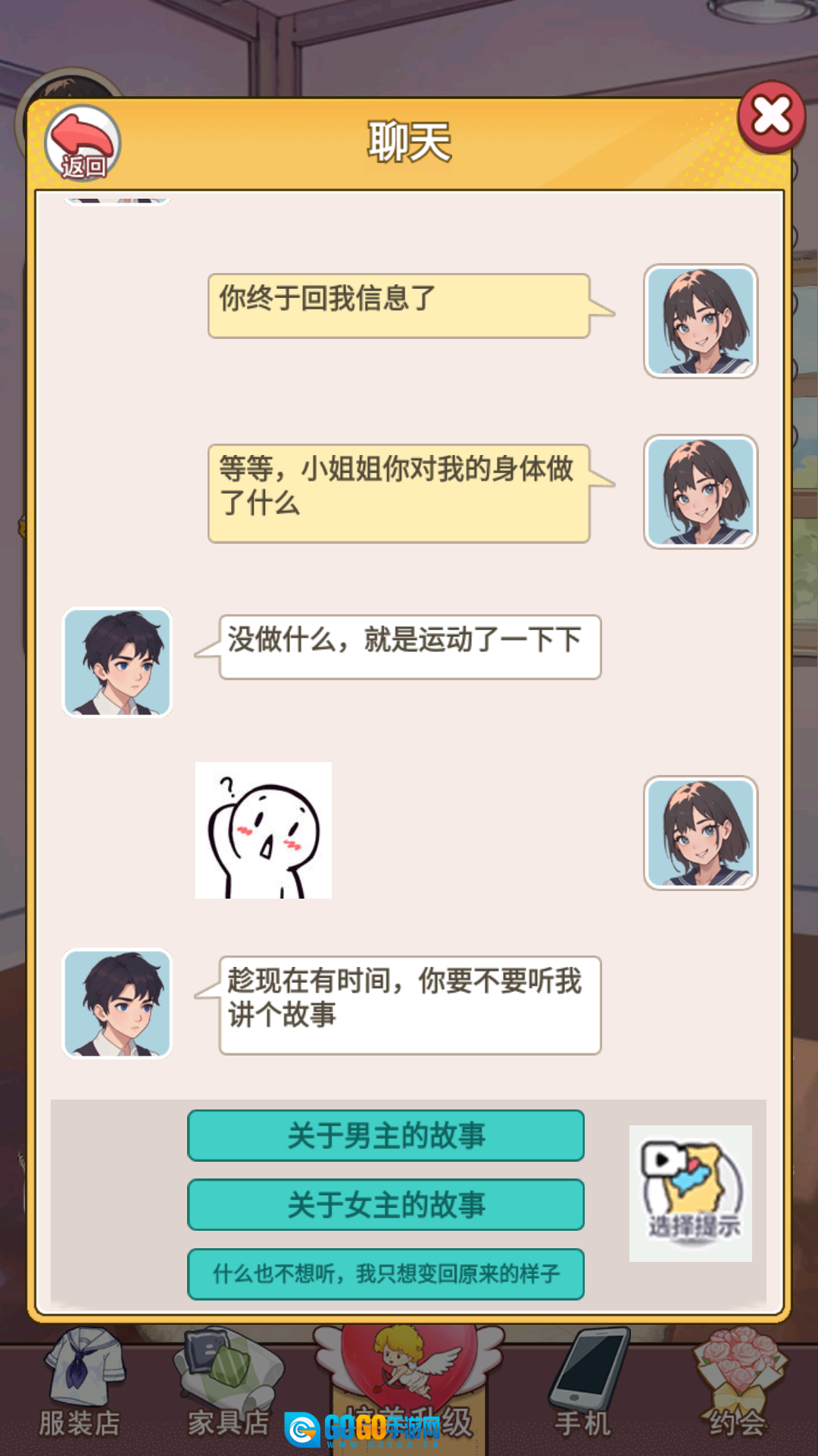 2、屏幕上将会展现出美丽的虚拟女友形象,连续点击能够加快时间流逝,进而触发新事件。