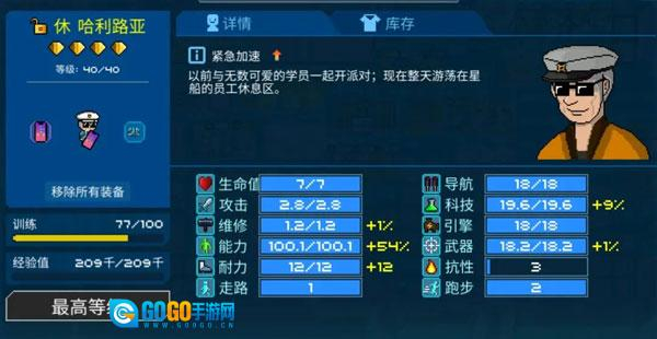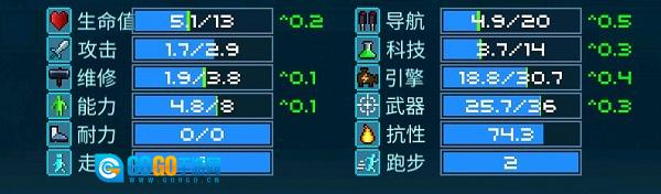 在像素星舰的船员档案中,你能够查看船员的属性。这些不同的属性,各自代表着船员不同的能力数值。通过把船员安排到健身房或者学院展开训练,就能够提升其属性值。如下图所示,其中的绿色数字便是经由训练而获得的。