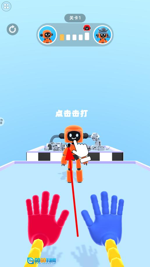 1、依据提示点击屏幕击打机器人,此乃基础互动操作。借助点击,可开启后续游戏进程,促使游戏逐步推进。