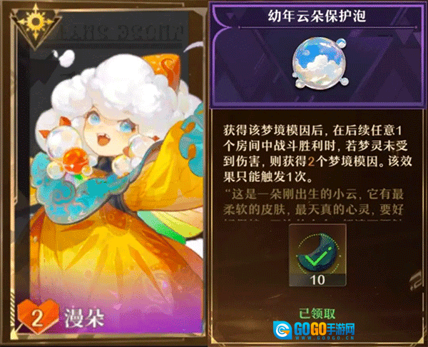 【幼年云朵保护泡】获取方式:除第二次商店补给外可得。个人比较推荐,消耗一次抽取,能得到两个。在我们【无尽梦回】里,这就如同拥有自己的强欲之壶一般。