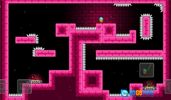 1、关卡里布满了大量尖刺与障碍,对玩家的操作极具挑战性,有时能把人逼得抓狂。