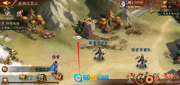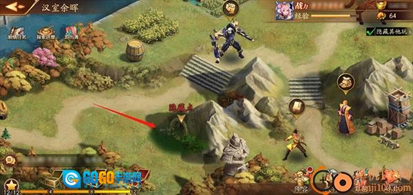 本章的隐藏点属于线索事件,需先获取线索方可触发。线索处在地图上方的山脚下,拾取那些散落的纸页后,依据指示前往地图左下方貂蝉右侧石阶旁的山脉,这样就能触发隐藏点。