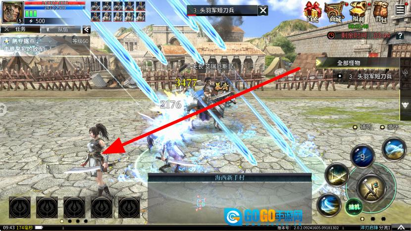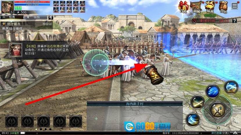 2、踏入战场后,长按屏幕并往右侧滑动,以此来移动角色。借助角色右侧的蓝色标示线,精确调整角色位置,进而熟悉战斗操作方式。