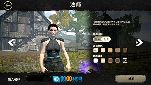 2、以法师为例,在设定好性别、肤色、发色及昵称后,便可开启冒险之旅。