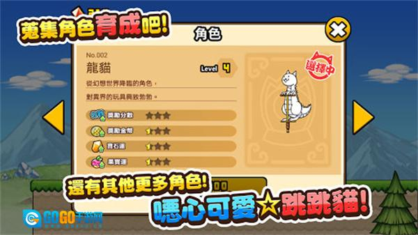 3. 【超畅快!转蛋收集猫咪】踏上跳跳杆,开启收集各类新奇猫咪的奇妙之旅吧!除了主角跳跳猫,《猫咪大战争》里的众多角色也会闪亮登场哟!能领略到这些角色在不同游戏中呈现出的别样风采!