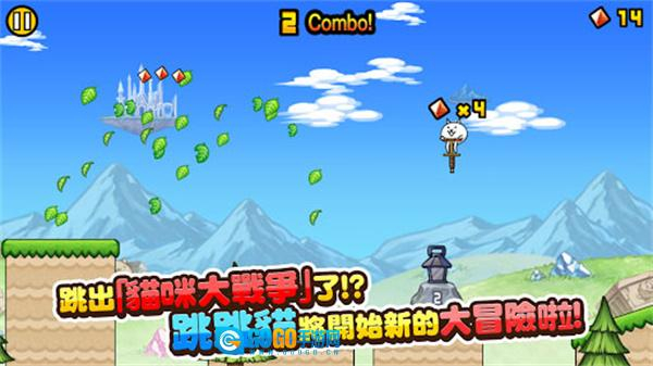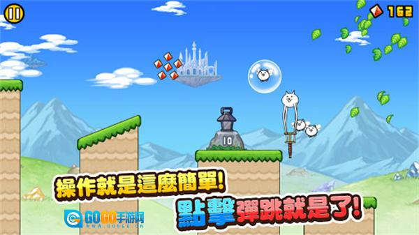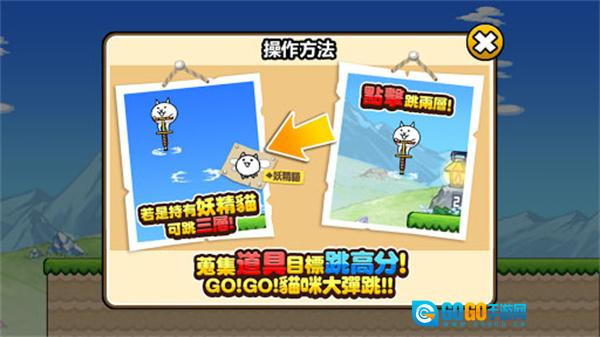 2. 【超明快!道具搜集】引领妖精猫向前,朝着平地的方向进发!在游戏里将出现的「妖精猫」纳为伙伴后,空中弹跳发出后能额外获得一次弹跳机会。而且在游戏过程中还能随机获取各类道具。