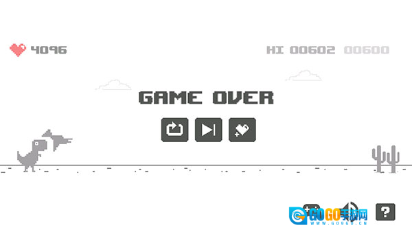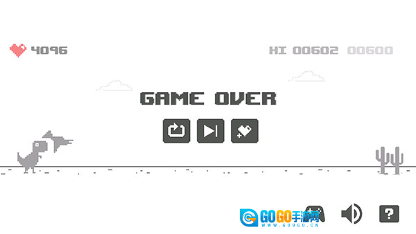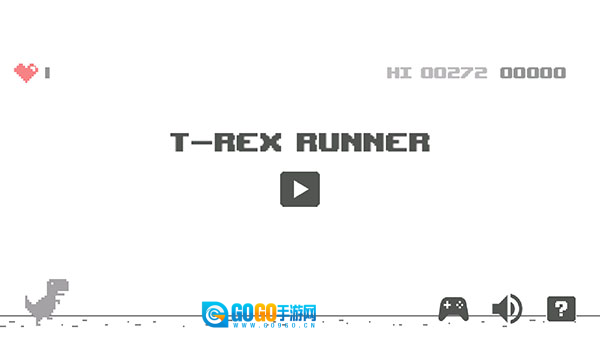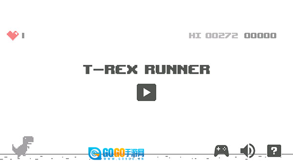 2、轻点屏幕中央的播放图标就能开启游戏。要是碰到阻碍,向上滑动屏幕,让小恐龙跳起来,躲开障碍物。
