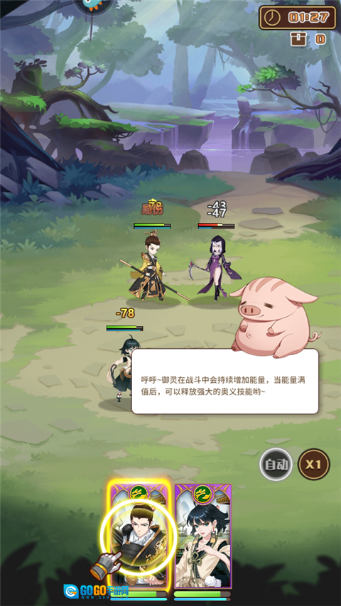 5、此后,角色将自动投入战斗。在战斗过程中,御灵的能量会不断累积,当绿色能量条达到满值时,便能释放威力强大的奥义技能,对敌人造成大面积伤害。
