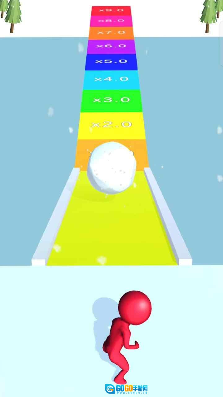 1、进入关卡后,通过滑动屏幕控制雪球滚动方向。