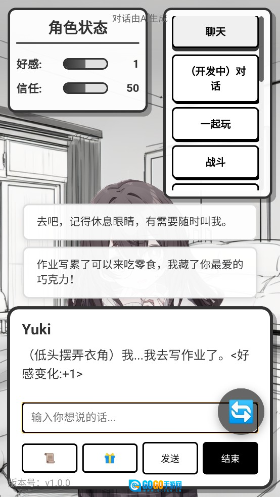 3、借助送礼、互动等途径,增进与Yuki的好感,从而开启更多剧情以及互动内容。