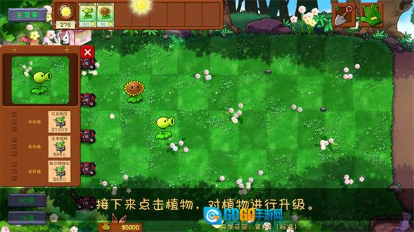 3、首先在草坪上栽种植物,接着点击该植物,耗费一定能量便可实现升级。