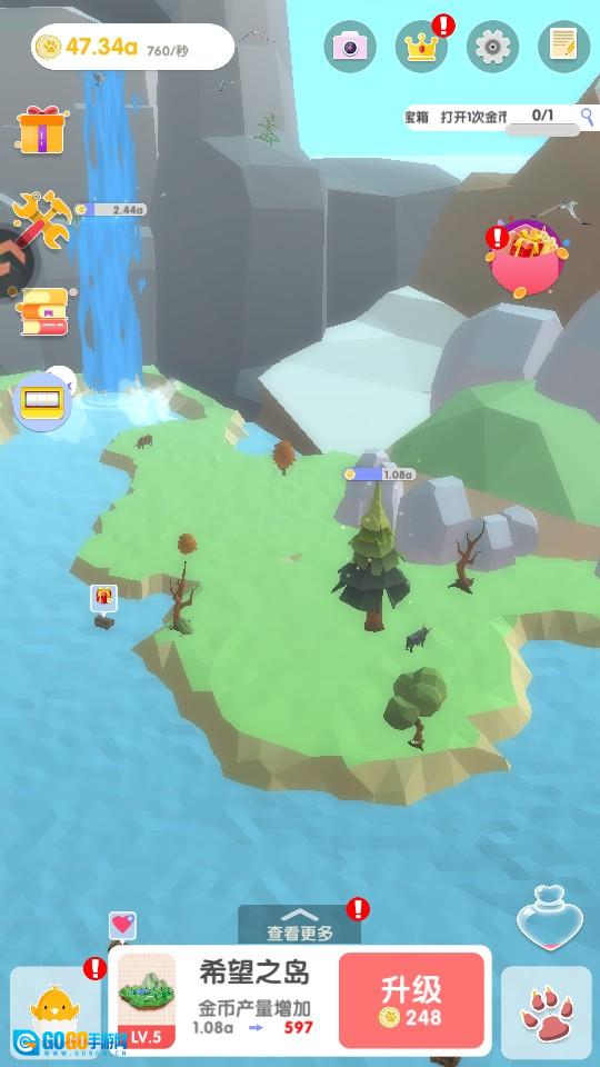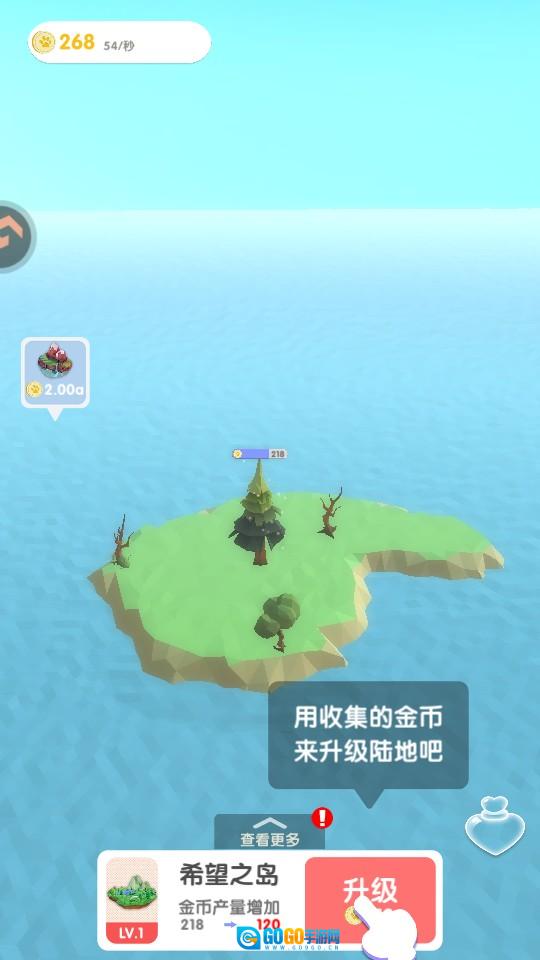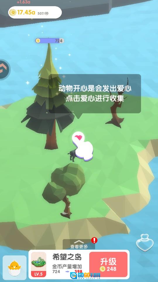 5、当收集到充足的爱心后,就能对陆地进行升级,此举不仅会提升金币产量,还会扩大陆地规模。