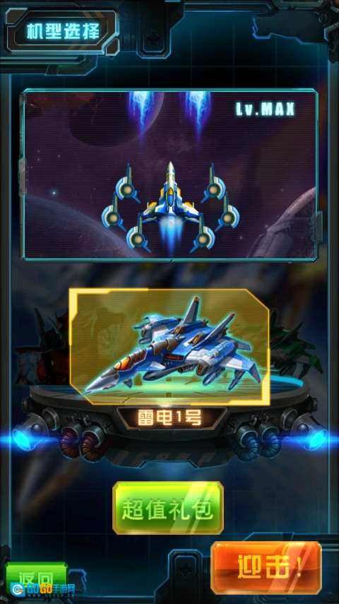 1. 请首先在本站免费安装飞机大战单机游戏的经典版本,安装完成后打开游戏,进入游戏界面后选择机型,接着点击迎击。