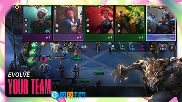 4、游戏内提供丰富多元的英雄供玩家挑选,玩家能够在庞大的英雄库中抉择心仪英雄,并依据自身策略,组建出实力最强的队伍。
