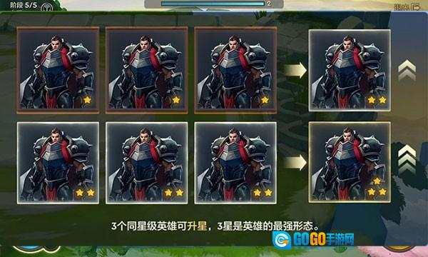 当三个相同的棋子同时出现在场上时,会自动合成为一颗星级 +1 的高星棋子。完成高星级棋子的合成后,棋子的各项属性以及棋子技能均会得到提升。