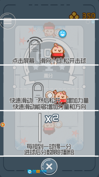 2. 轻触屏幕,朝着小球方向滑动,在适当位置松开以击球。若想增加击球力量,可加快滑动速度,之后再松开。