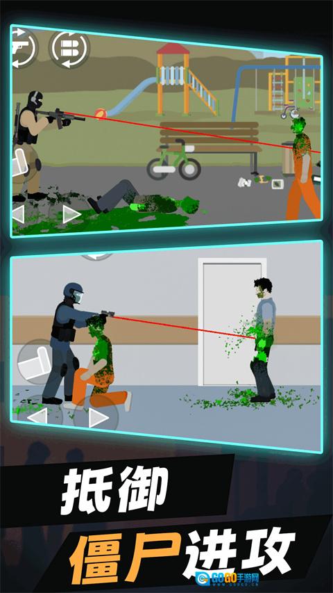 2、在场景里,借助下方的方向按钮来操控角色移动,对位置进行调整,这样能更精准地瞄准与射击僵尸。灵活地移动不仅可以躲避僵尸的攻击,还能够寻觅到有利的射击点。