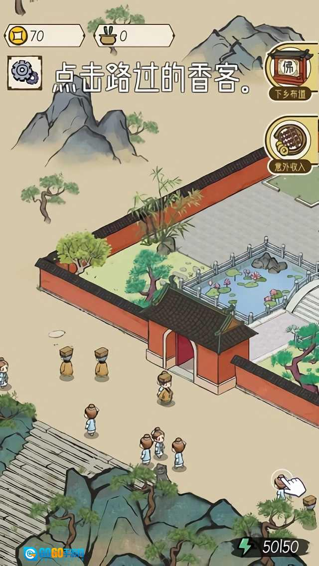 下山去化缘,就有可能获取到丰富多样的道具,并触发相关事件,助力寺庙得到更完善的建设。