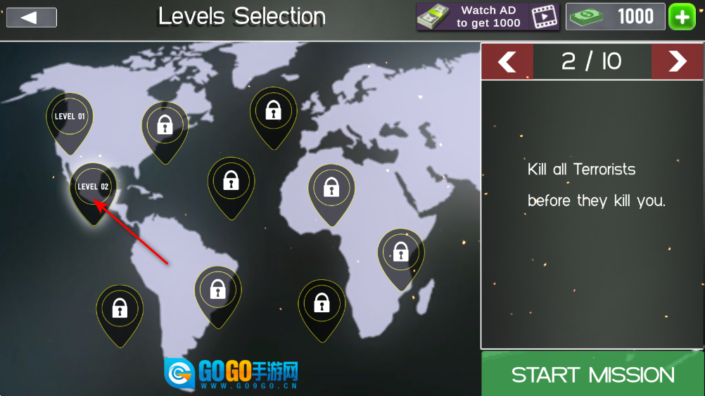 3、接着选择关卡