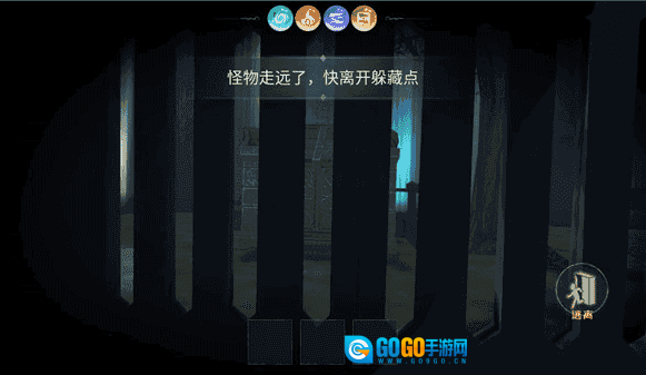 6、当怪物快速靠近时,需立刻躲进躲藏点。成功躲避怪物后,找到传送门就能获胜。