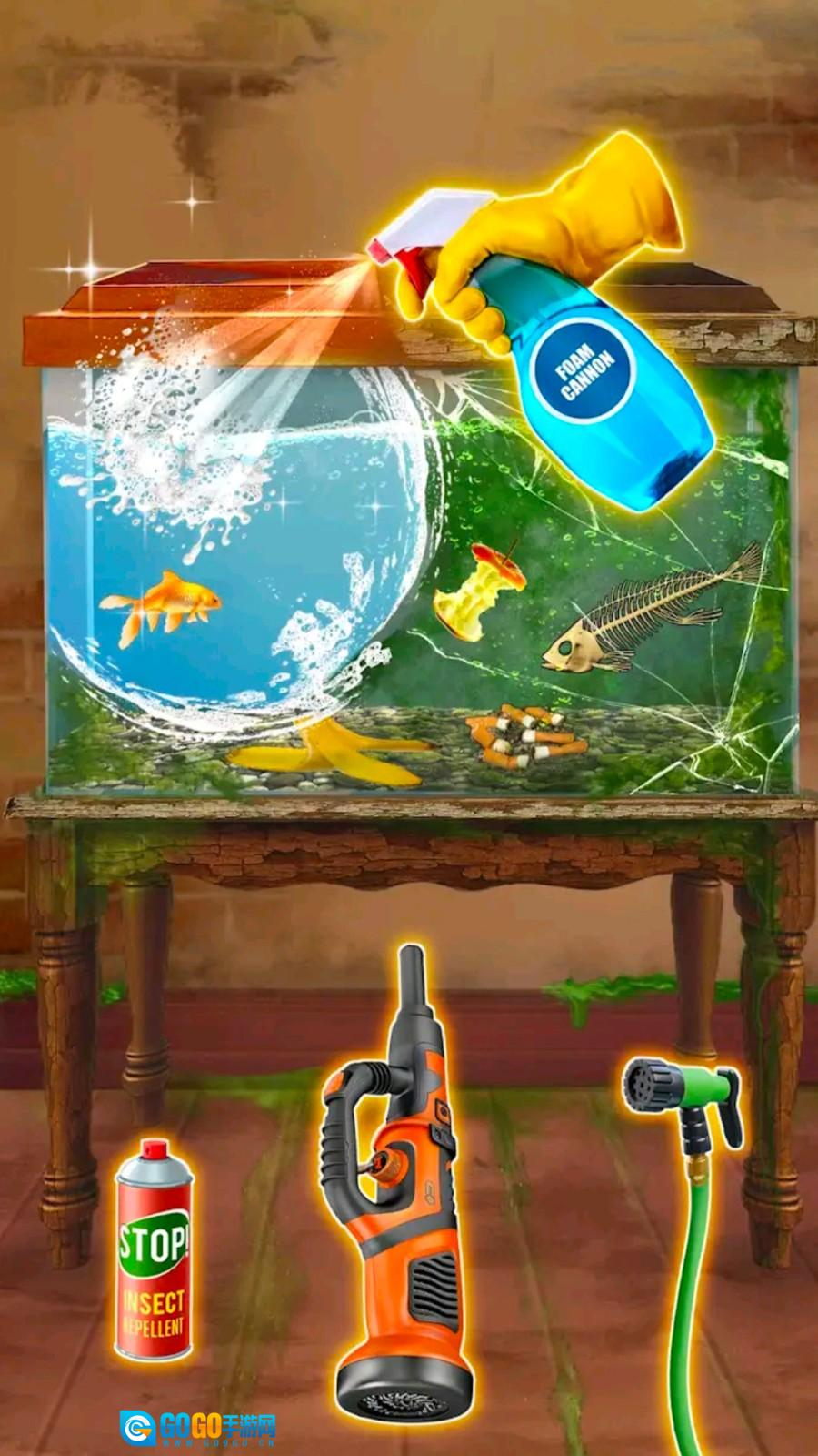 1. 进入游戏后,点击场景里有待处理的物品,锁定清洁或修复的目标。