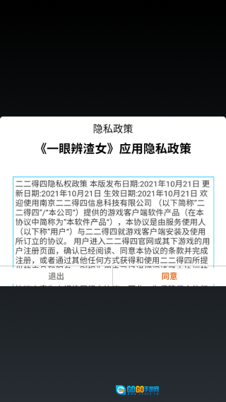 1. 进入游戏前,需先同意相关隐私政策,点击“同意”。