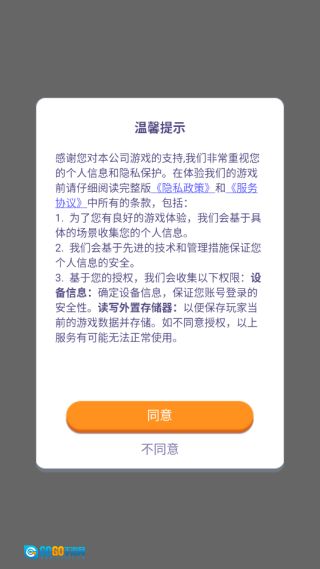 1在开启游戏之前,你得先同意对应的隐私政策以及服务协议。