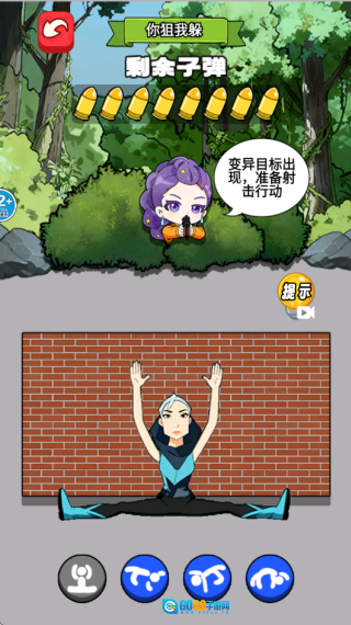 3. 在“你狙我躲”模式里,玩家要协助画面下方的角色挑选不同姿势,以此躲避对手发射的子弹。