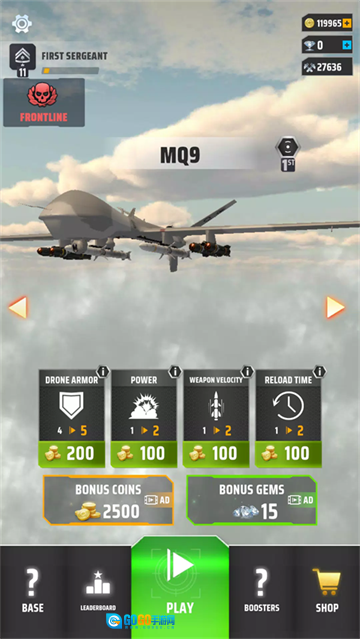 《无人机打击军事战争3D》是一款基于现代空战背景打造的军事射击类游戏。在游戏里,玩家能够驾驭各种先进的无人机以及武装直升机,深入到敌人后方,去执行精准打击和具备毁灭性的空袭任务。你要在战火弥漫的天空之上,对敌方的坦克和军事基地展开致命攻击,从而体验一场策略与操作完美结合的空中征服之旅。