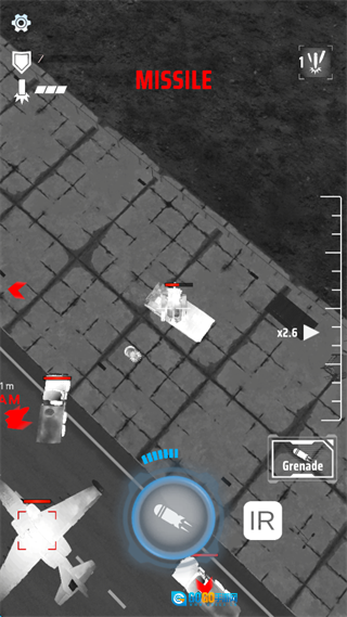 4、轻点屏幕下方的红色投弹按钮,即可投放炸弹。需留意的是,步兵防空导弹具备跟踪能力,在执行轰炸任务时,临近结束阶段,尽量不要悬停,而是快速移动,以此降低被防空导弹锁定的几率。
