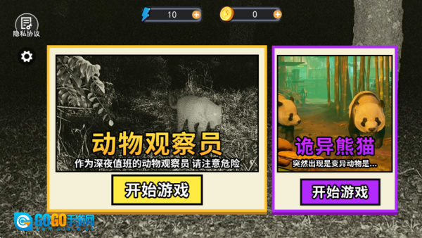 2. 如图所示,玩家能够自主选择动物观察员模式或者诡异熊猫模式来进行游玩。