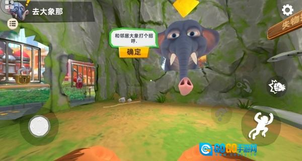 2、当接到“和邻居大象打招呼”的任务,点击“确定”之后,操控角色去与大象进行互动,通过完成这一社交任务来推进剧情,进而解锁后续内容。
