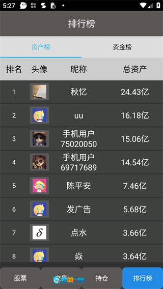 5. 您能够在排行榜里查看资产的排名情况,一旦您的资产超过其他人,就能够登上榜单。