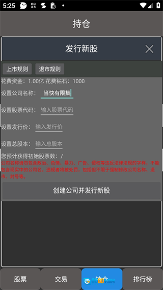 3.除了炒股,您还可以选择创建公司并发行新股。