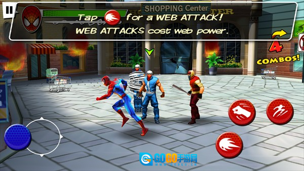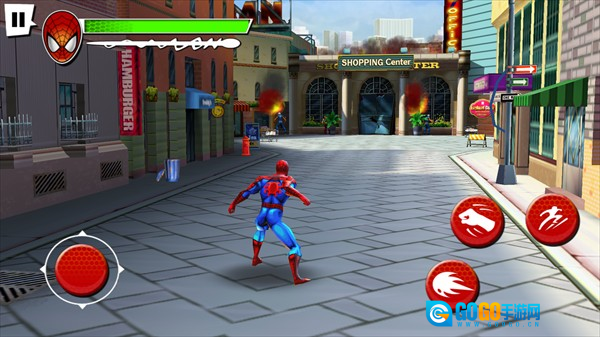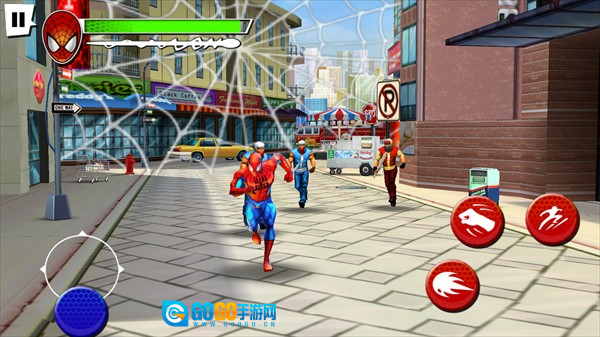 3、主线剧情串联起多个经典的蜘蛛侠故事,玩家将与绿魔、章鱼博士等著名反派展开激烈对抗。支线任务则提供了额外的挑战内容,完成后可解锁特殊的装备与技能。1、借助虚拟摇杆操控移动方向,凭借简单手势触发特殊技能。自动锁定系统助力精准攻击目标,确保战斗过程流畅无阻。