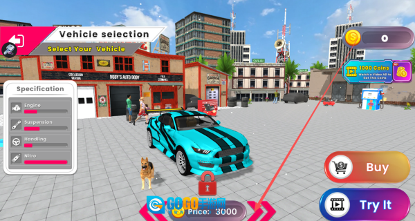 1. 进入游戏,首先在车库中挑选车辆,利用自定义功能对车辆颜色进行调整。选定座驾后,便能进入开放城市,自由地在街区探索,或者寻觅隐藏任务。